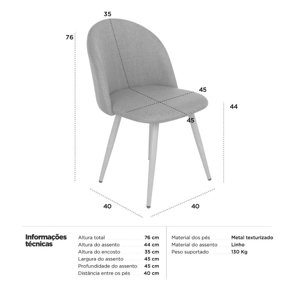 - 1 Cadeira estofada jantar cozinha Maite Sedona linho